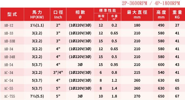 *The AC model pump can be optionally equipped with a copper base plate for wear and corrosion resistance.